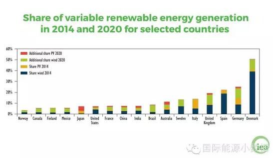 原标题:【IEA预测】2020年各国风电光伏占发电比例最高能到多少?