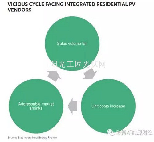 目前,摆在美国住宅太阳能巨头SolarCity、Sunrun和Vivint公司面前的是居高不下的成本和纵向整合战略的压力。如果销售放缓,公司庞大的营销、结构性融资、法律、会计、游说、IT和工程团队均将成为沉重的负担。