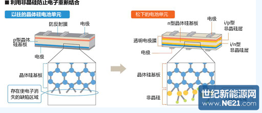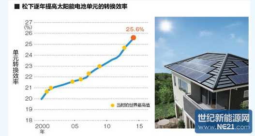 收购了三洋电机的松下通过反复改良非晶硅的形成等,提高了转换效率。并于2014年采用背接触型结构,使转换效率突破了25%的壁垒。
