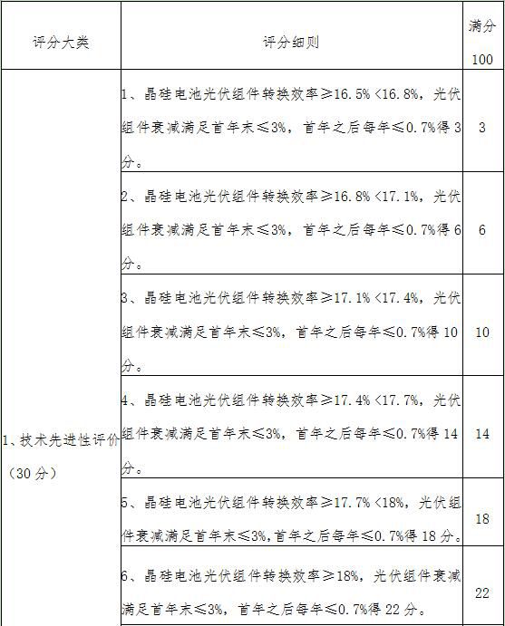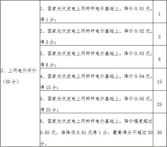 (六)国家光伏发电上网标杆电价基础上,降价幅度超过0.05元以上,每降低0.01元得1分,最高得分不超过30分。(30分)