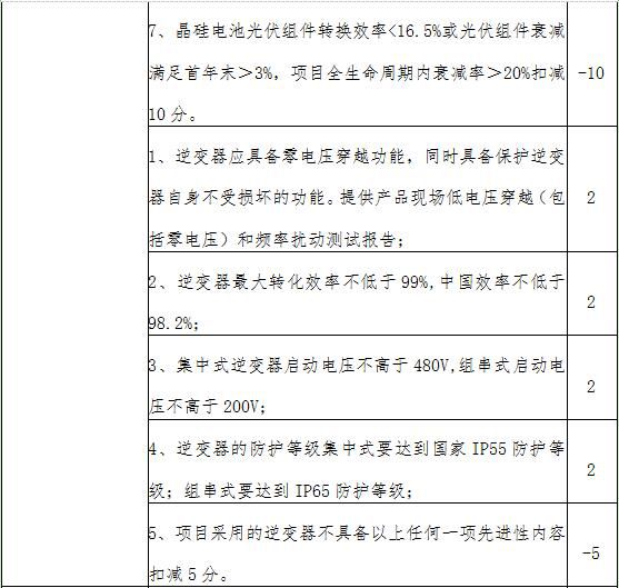 5.项目采用的逆变器不具备以上任何一项先进性内容扣减5分。(-5分)