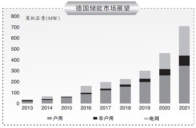 德国是全球最大的户用储能市场,而来自德国复兴信贷银行的持续补贴——为现有和新增光伏用户配套储能提供补贴,2013-2015年补贴额达到储能系统成本的30%,2016年以后达到22%并且以每半年3%的速度下降。GTM预测,户用储能市场将继续稳步增长,2021年德国市场户用储能容量将占到全部装机容量的49%。