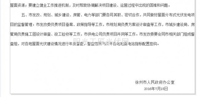 不管怎样,这个文件通知的发布,给光伏人在徐州市推广光伏提供了一个支持性文件,一定程度上促进了光伏分布式在徐州市的发展!!