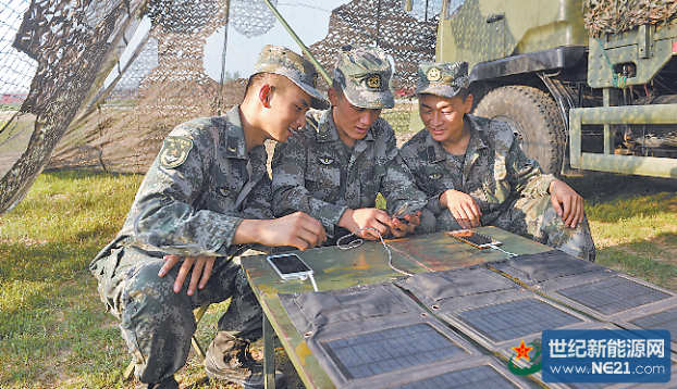 “自从用上了太阳能蓄电池,我们再也不用为手机充电烦恼啦……”8月17日,记者在陆军第20集团军某旅野营驻训点看到,连队自由活动时间,官兵们拿出一块书本大小的太阳能板,放到太阳光下,为自己的手机充电。该旅军务科科长何俊伟说:“为连队配发便携式太阳能蓄电池,有效解决了官兵在野外使用手机的后顾之忧,深受官兵好评。”