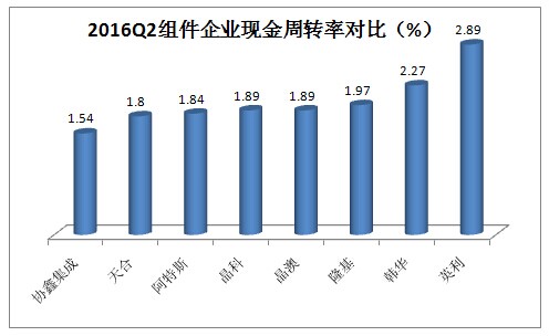 现金是必要的,但是现金的周转率是更加有实际意义的指标。在考核的第一集团8家组件厂商中,于2015年重组上市的黑马协鑫集成表现最为出色只有1.58,天合光能1.8,阿特斯1.84,晶科能源1.89均排在前列。周转率最低的依然是英利,可以预见下半年英利的将面对相对严苛的考验。