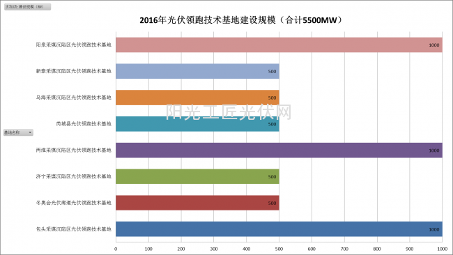 其次,文中明确2016年全国光伏发电新增建设规模为18.1GW,其中:普通光伏电站项目12.60GW,光伏领跑技术基地规模5.5GW。各省(区、市)2016年光伏领跑技术基地规模见下图所示。