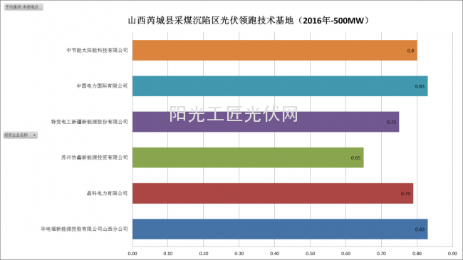 针对国家能源局印发《关于下达2016年光伏发电建设实施方案的通知》-国能综新能〔2016〕166号文件中提出的光伏领跑技术基地规模(5省8基地),时至当日,只有【山西阳泉采煤沉陷区光伏领跑技术基地】与【山西芮城县采煤沉陷区光伏领跑技术基地】二个示范基地招标工作已尘埃落定,其中:阳泉光伏基地最低上网电价为0.61元/kWh,最高上网电价为0.88元/kWh;芮城光伏基地最低上网电价为0.65元/kWh,最高上网电价为0.83元/kWh。最终入围企业如下图所示,入围中标企业最突出的当数是:协鑫新能源(GCL)。