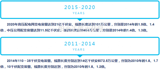 “十三五”配电网建设改造行动计划中,2015-2020年与2011-2014年配电网建设改造规模比较如下图所示: