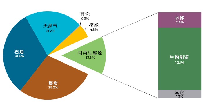 表1:2014年各类能源在全球主要能源供给总量中的占比