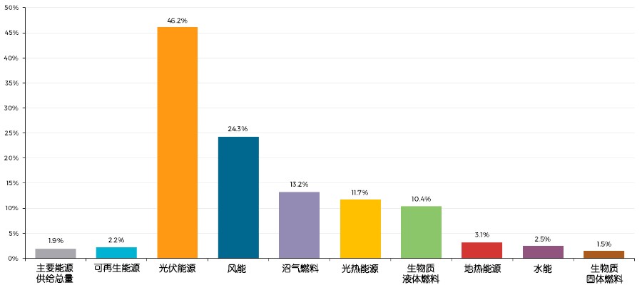 表3:2014年可再生能源在各地区主要能源供给总量中的占比