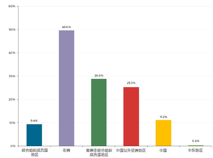 非经合组织成员国地区约消费可再生能源总量的3/4,反映出生物质能(如木材)在家庭用能中的重要地位。非洲能源消费中可再生能源约占一半,同时亚洲(除中国)与美洲非经合组织成员国地区中可再生能源占比达1/4。然而在经合组织成员国中,可再生能源在能源供给总量中占比仅9.4%。