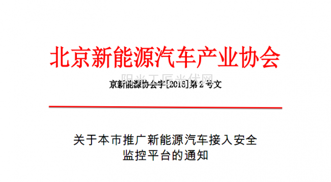 (一)自通知下发之日起,各企业立即对接北京市新能源汽车质量安全监控平台与北京市新能源汽车运行服务与管理中心,按照其要求将所有在京推广车辆尽快接入本市监控平台。