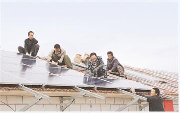 9月1日,在尚义县大苏计乡大苏计村,工作人员正在屋顶上安装光伏发电装置。今年,尚义县大苏计乡在7个贫困村实施612千瓦的光伏扶贫项目,覆盖农户1015户,为农民脱贫致富奠定基础。