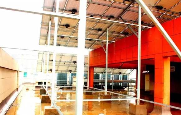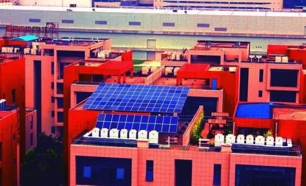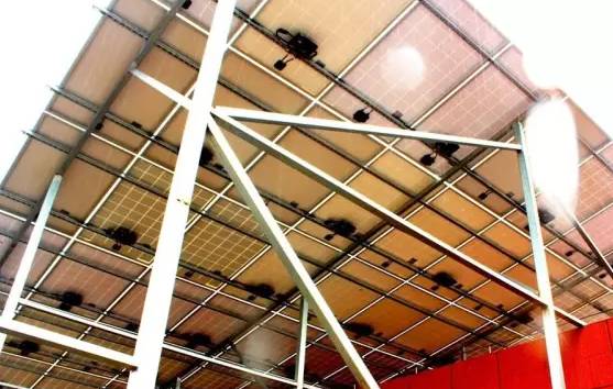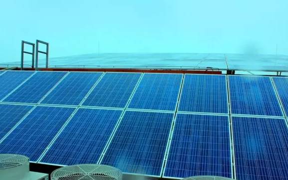 利用业主的屋顶安装2块光伏矩阵,发电自发自用,余电上传。
