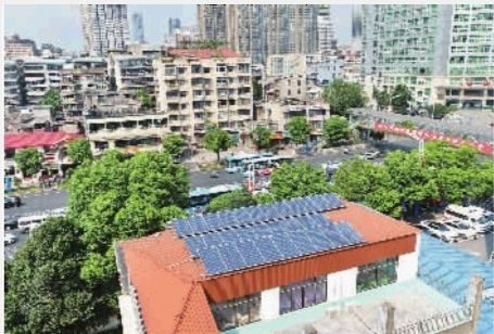 中山路社区太阳能光伏电站去年8月并入国家电网发电,这也是长沙市首个社区办公屋顶太阳能光伏项目。
