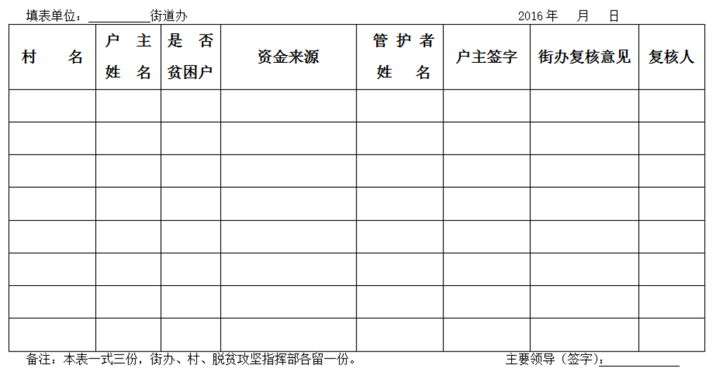 2、申请、审核、复核。(1)贫困户自愿向村委会提出申请,村委会严格审核,确定安装对象。(2)街办审核把关。对申请确定安装的贫困户,组织人员进村逐户实地调查复核,是否具备项目实施条件、家庭成员是否具有基本的设备管护能力等情况,并如实、详细记录登记(附件2),报脱贫攻坚指挥部办公室备案。