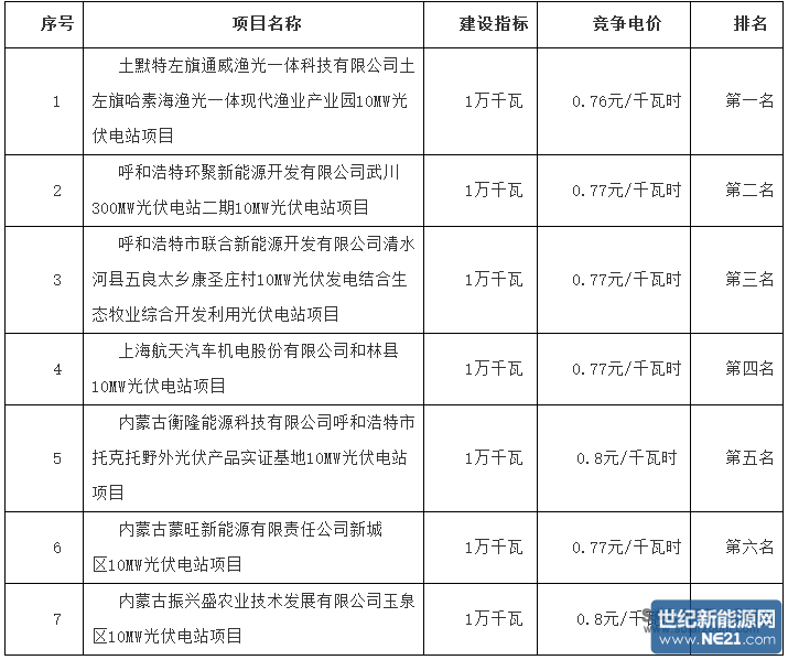 12月4日,国网新能源云公布了陕西省的机制电价竞价的出清结果,共6501个项目入围。其中,光伏竞价项目:机制电量规模5229999.988兆瓦时,机制电价水平0.35元/千瓦时,项目6433个;风电竞价项目:机制电量规模6270000.006兆瓦时,机制电价水平0.352元/千瓦时,项目68个;陕西的煤电基准价为0.3545元/kWh。陕西风光项目竞价上下限:0.23~0.3545元/度单个项目申报电量上限:比例上限90%。陕西省入围的部分项目截图如下:来源:国网新能源、光伏盒子