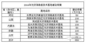 国家能源局下发《2016年光伏发电实施方案》(国能新能【2016】166号),实施方案指出普通光伏电站新增建设规模1260万千瓦,2016年光伏领跑者技术基地建设规模550万千瓦。其中明确指出2016年光伏领跑者技术基地建设规模分配: