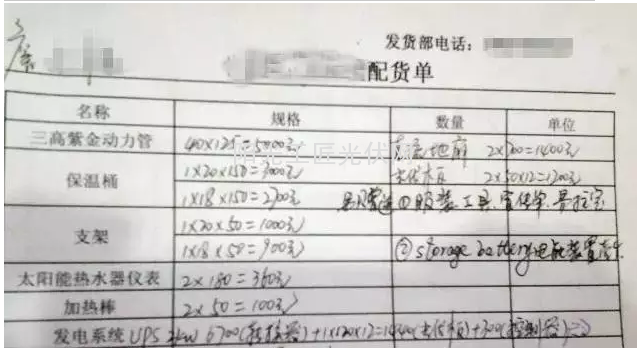 詹先生将其收到的配货单发给了小编,配货单中的产品便是詹先生按该建议的市场价进到的第一批货,这批货中的市场价已经比一般市场价高出很多,更别说和进货价相比。配货单中有太阳能热水器等相关产品也有“光伏发电系统”。詹先生收到了一个2KW和一个1KW的光伏发电系统,其中2KW光伏发电系统中包含一个2KW的逆变器、一块光伏板、一个控制器还有电箱及配件; 1KW光伏发电系统中包含一个1KW的逆变器、一块1光伏板、一个控制器和电箱及配件。