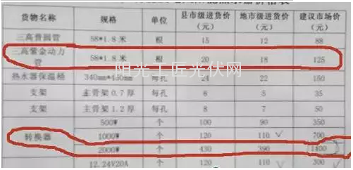 那詹先生拿到的进货价格究竟是多少呢?詹先生说第二项三高紫金动力管的市场价格就是18元左右,现在进货价就是18元。另外从表格中可以看到,詹先生拿光伏发电板的进货价是6元/瓦,比市场价高出很多。