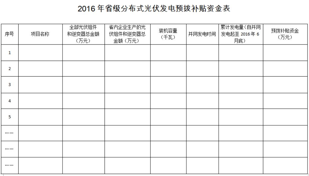 附件:1、陕西省示范推进分布式光伏发电补助资金申报表