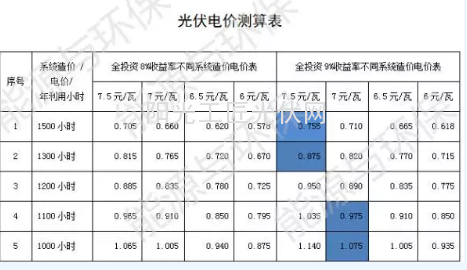 按照目前企业投标价格和对未来组件的预测价格,选取系统造价6.5元/瓦,发电小时1300小时、1100小时作为二类地区和三类地区的电价参考标准,也就是0.72元/千瓦时和0.85元/千瓦时作为上下浮动的中位数。