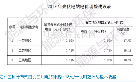 综上所述,考虑到不同类型电站和投资、发电、运维和融资环境的不同,我们提出了2017年光伏电站电价调整建议,供有关部门参考。