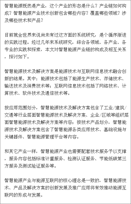 二智慧能源产业不是单一的产业,而是能源产业与互联网产业和现代通技术的复合体。