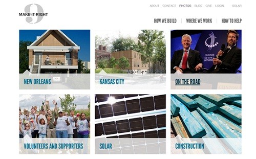 布拉德.皮特还创办了“Make It Right”绿色建筑组织,在美国推广太阳能屋顶。目前,这个绿色建筑组织还在积极的运营当中,改建和建设了许多绿色房屋。用自己的设计将太阳能运用到建筑中,建设更多的太阳能屋顶。