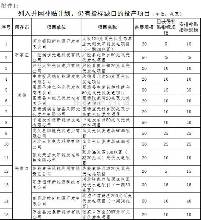 附件:1.列入并网补贴计划、仍有指标缺口的投产项目