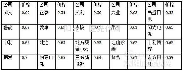 包头光伏领跑者唱标结果