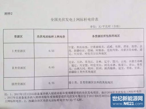 | 资源区 | 光伏电站标杆上网电价 | 各资源区所包括的地区 |