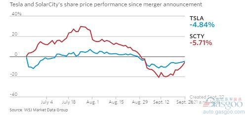 此外,两家公司有很多共同的大股东。FactSet提供的数据显示,特斯拉10位独立投资者中有6位也是太阳城的持有者。在今年过去的几个月里,太阳城的股票下降近60%,销量的下滑会拉低其市场份额,可能会寻求新的合作伙伴。