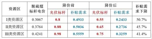 表 3:标杆电价下降带来的补贴需求下降(单位:元/kWh)