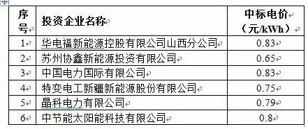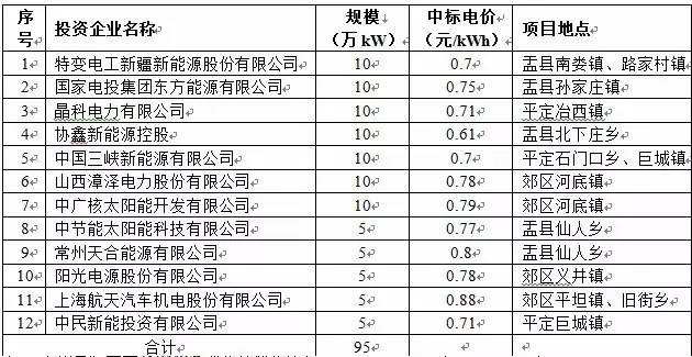 表2:山西阳泉950MW领跑者基地项目分配情况