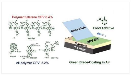 使用o-MA的另一个优点是,它让研究人员可以用刮刀涂布法或在室温下生产太阳能电池。刮刀涂布是一种使用玻璃刮刀将太阳能电池薄膜的薄层涂布在刚性或软性基板的过程,而且这一制程还兼容于大规模的商用制造。