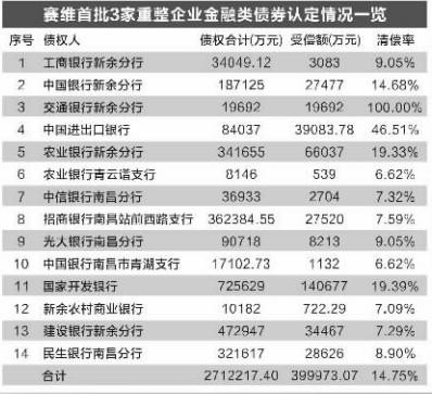 去年11月,新余市中院宣布,赛维集团旗下光伏硅、多晶硅、高科技、高科技(新余)四家公司实施破产重整。破产管理人由新余市高新技术产业开发区成立的破产清算组担任。除多晶硅公司由于不具备重组条件,走向破产清算外,其余三家公司重整方案于今年8月正式出炉,但在随后的第一轮表决中遭到多数债权银行否决。