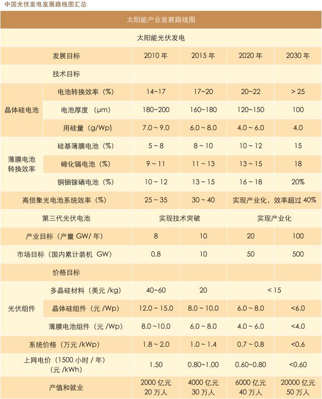 附图:中国光伏发电发展路线图汇总