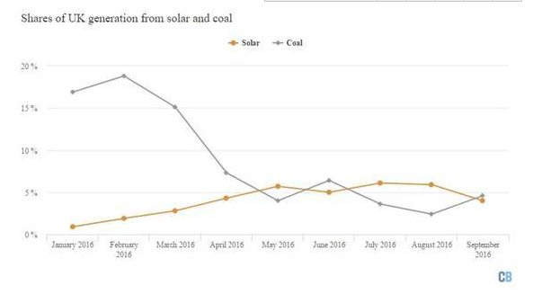 政府对太阳能发展的大力推崇取得了良好的效果。气候变化分析网站CarbonBrief的数据显示,英国的太阳能发电量在过去的6个月里已经超过火力发电厂的发电量。