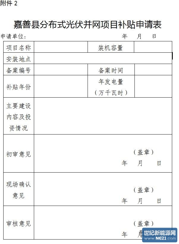 2.嘉善县分布式光伏并网项目补贴申请表