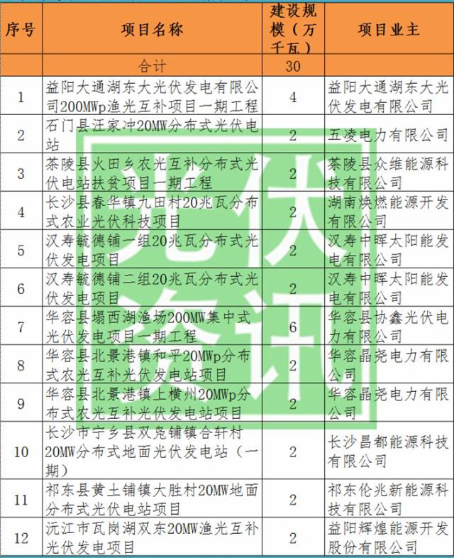 4、2016年7月28日,湖南省2016年光伏项目名单公示(12个项目300兆瓦)