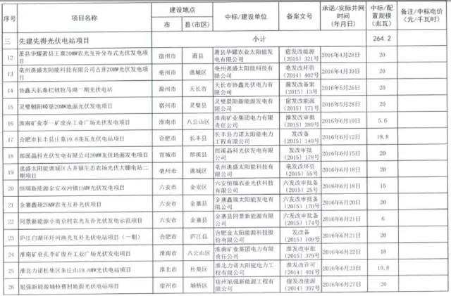 6、2016年年9月14日 ,安徽省能源局发布《安徽省能源局关于下达2016年地面光伏电站项目建设规模的通知》(共26个项目1GW)。
