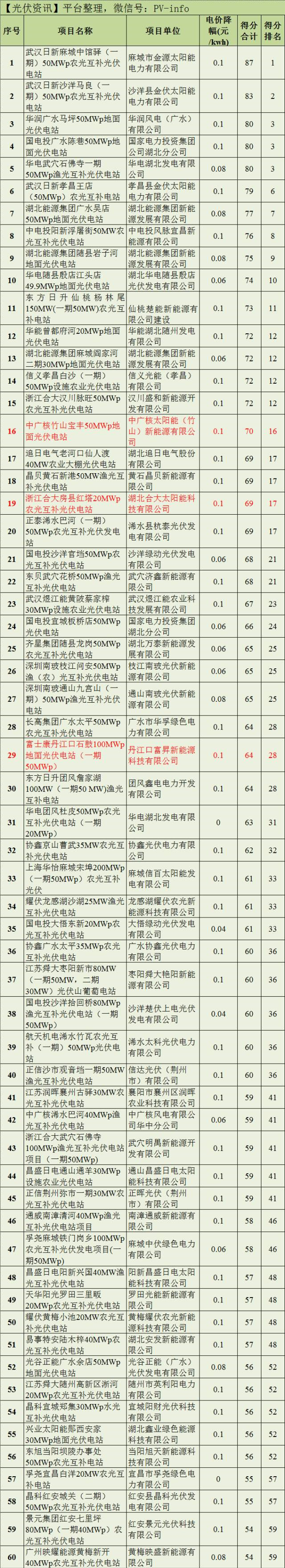 8、2016年10月11日,湖北省能源局发布 《湖北省2016年光伏电站竞争比选结果公示》(总容量532万千瓦)