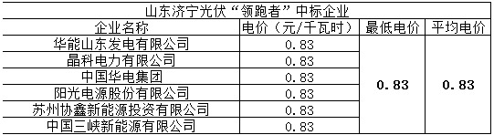 表二山东济宁光伏领跑者中标企业及电价