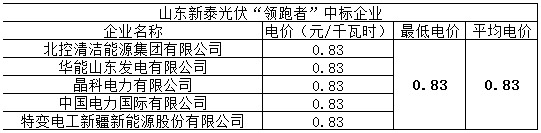 表三山东新泰光伏领跑者中标企业及电价
