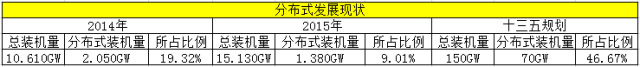 由表九可得,2015年的总装机量为15.130GW,分布式装机量为1.380GW,分布式仅占9.01%,甚至低于2014年的占比19.32%。以目前光伏行业发展趋势而言,地面电站指标基本已被瓜分,大部分企业已转战分布式,分布式肯定是未来光伏行业的一大热点。且十三五规划中分布式装机量为70GW,若不大力发展分布式,指标将很难完成。因此,意见稿中的分布式度电补贴远不能达到行业期望,正式文件下发时一定会增高,但与地面电站相同,增幅不会过大。