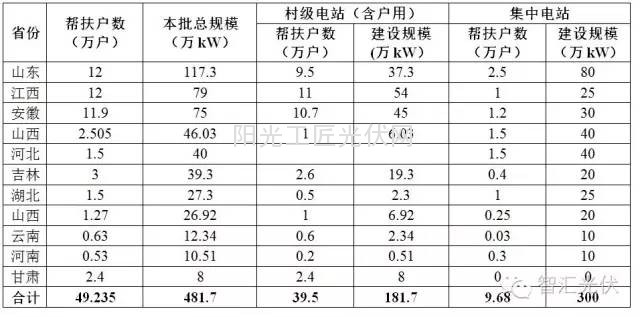 根据该文件,第一批光伏扶贫指标将下发给山东等11个省份,总规模为4.817GW ,帮扶492350户贫困人口。