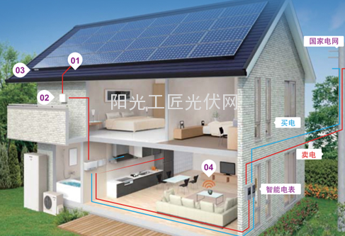 01. 太阳能组件、02.逆变器、03.支架系统、04.监控系统