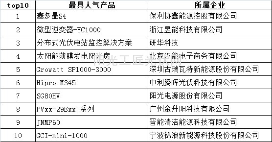 在展会过程中,观众不仅可以观赏各种光伏产品,还可以为自己喜欢的光伏产品留言点赞。主办方针对所有参展商展出的光伏产品,按展品被浏览数、留言数、资料下载数等项目分值综合评估,经过OFweek专业团队认真筛选和评定,最终评选出本次光伏在线展上10大最具人气光伏产品,评选结果公布如下: