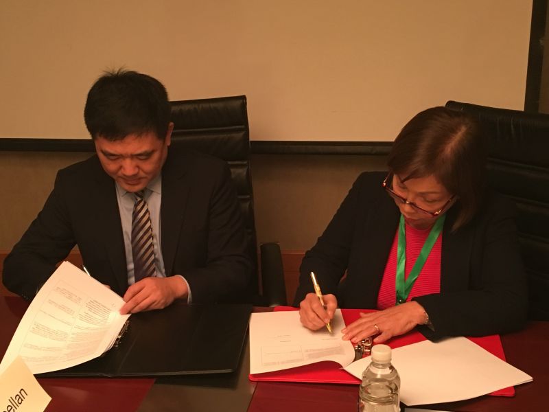索比光伏网讯:2016年10月21日,海润光伏和菲律宾SunAsia在中国北京签订备忘录,就联合开发位于菲律宾南部Victorias光伏电站项目开始正式的深入合作。菲律宾政府外交部秘书长Mr.PerfectoYasayJr.,菲律宾总统访华代表团顾问Christopher Lu,海润光伏副董事长兼光伏总裁徐湘华先生、光伏海外市场销售副总裁张波先生、光伏海外市场高级经理舒茜岚女士;SunAsia集团董事长、菲律宾光伏协会会长Mrs.Maria Theresa Capallan,业务开发总监Mr.Diosdado Capallan,业务经理Mrs.Andrea G.Capallan,董事长秘书Ms. Riezel Gernandizo等一同出席了签字仪式,并参加了会议讨论。